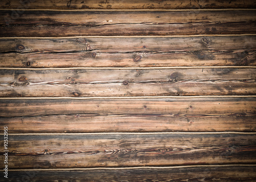 © kavzov, Obraz premium Wooden logs rope wall texture background