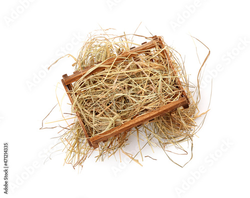 Fototapeta premium Wooden manger with hay on white background