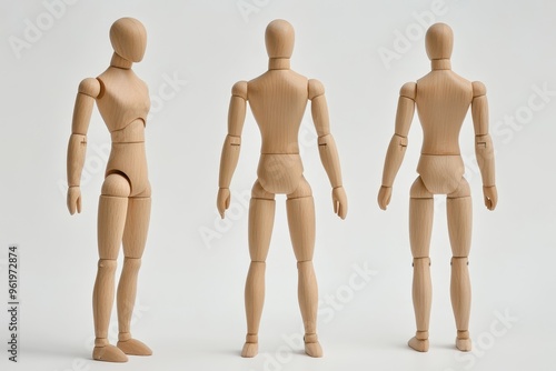 © LimeSky, Obraz premium Wooden mannequin practicing yoga on white background