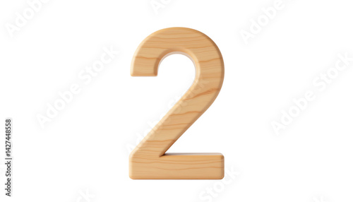 © KAMAPAN, Naklejka premium Wooden number two, white isolate background