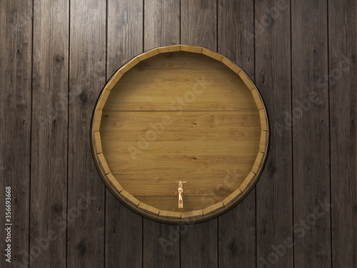Fototapeta premium wooden oak barrel in wine cellar