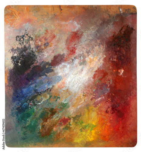 © Uros Petrovic, Obraz premium Wooden palette with mixed paints