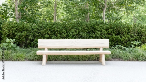 Fototapeta premium Wooden park bench, tranquil garden setting