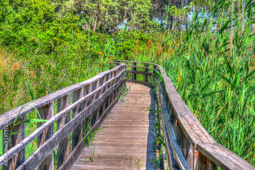 © Gabriele Maltinti, Obraz premium wooden path in Sardinia in hdr
