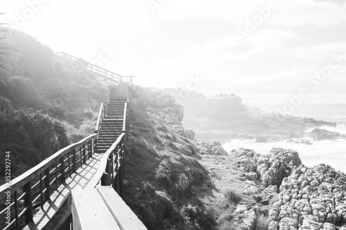 © Stephanie, Obraz premium wooden path next to sea on rocks