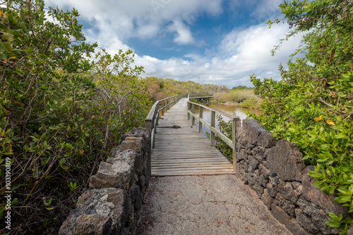 Fototapeta premium wooden path way across the mangrove on Isabela Island. Galapagos Islands. Ecuado