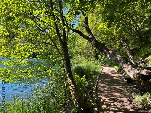 Fototapeta premium Wooden paths and walkways along the lakes and through the forest in the...