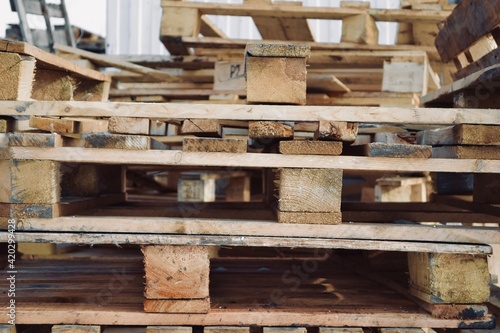 © Rashid, Fototapeta premium Wooden pellets stack for recycling background