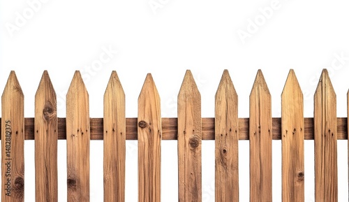 © Jumroon, Fototapeta premium Wooden Picket Fence Against White Background for Outdoor Design