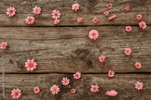 © The 2R Artificiality, Fototapeta premium Wooden piece adorned with tiny pink blossoms