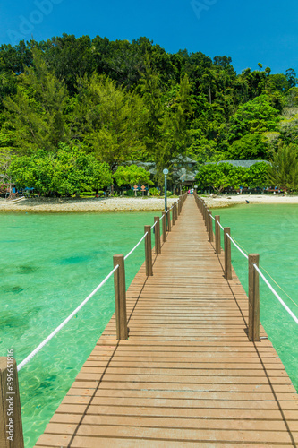 © Matyas Rehak, Naklejka premium Wooden pier at Gaya Island in Tunku Abdul Rahman National Park, Sabah, Malaysia