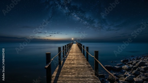 © toon cartoon, Fototapeta premium Wooden pier at night