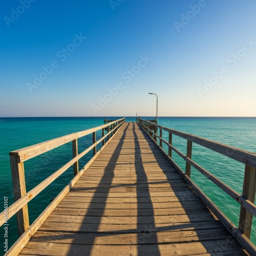 © DanadyaksaDen, Fototapeta premium Wooden Pier Extending into a Turquoise Ocean