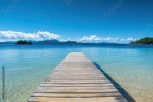 © Bernardo, Obraz premium Wooden pier extending into calm turquoise water under a clear sky