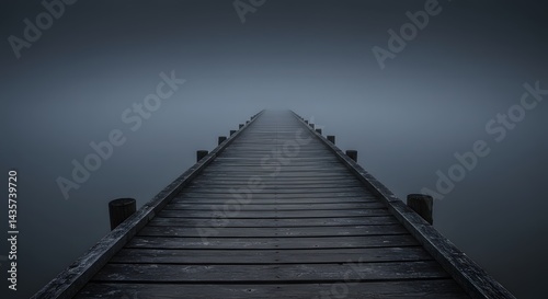 © Adit, Obraz premium Wooden Pier Extending Into Foggy Water Perspective