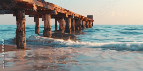 © KHAIDIR, Naklejka premium Wooden Pier Extending into the Ocean at Sunset