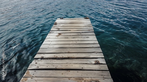 © atar, Fototapeta premium Wooden Pier Extending Over Calm Blue Water Under Sunny Skies
