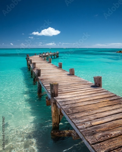 © Rayhans, Fototapeta premium Wooden Pier Extends Into Turquoise Tropical Ocean