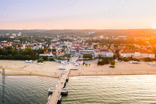 Obraz premium Wooden pier in Sopot in the morning with the colors of sunset. Poland. Europe