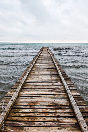 © ZenitX, Fototapeta premium Wooden pier leading to the Adriatic Sea on a cloudy autumn beach in Italy