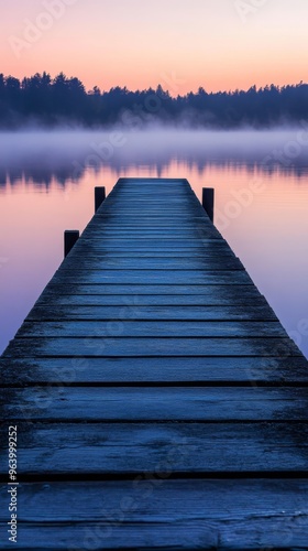 © labirint, Fototapeta premium Wooden pier on a calm lake during