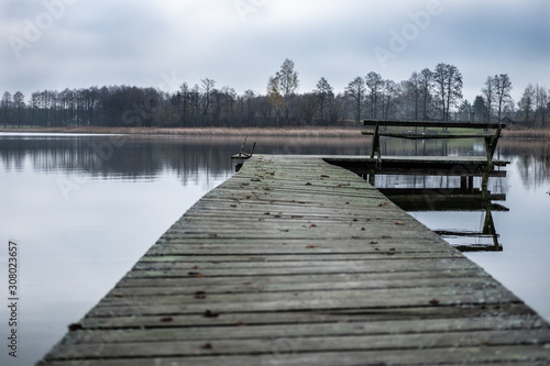 © Inga Pra, Naklejka premium wooden pier on the lake, meditation spot