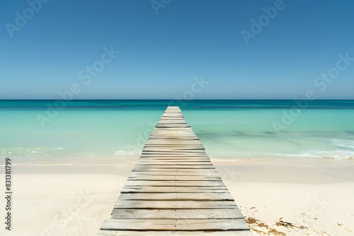 Obraz premium Wooden Pier on White Sand Beach with Turquoise Sea Water