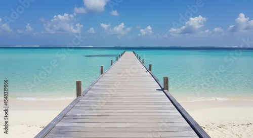 Obraz premium Wooden pier over turquoise water beach paradise vacation destination travel...