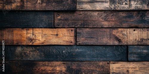 Fototapeta premium Wooden planks arranged in a rustic pattern with weathered texture