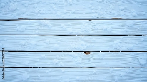 © Hamza, Naklejka premium Wooden planks covered with snow as background, top view. Winter season.