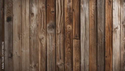 © Lasvu, Naklejka premium Wooden planks wall background with natural textures and tones. Rustic and warm environment.