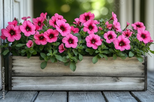 Fototapeta premium Wooden planter box filled with vibrant pink flowers