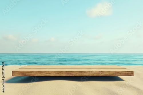 © rioyoungguns, Fototapeta premium Wooden platform beach ocean summer display