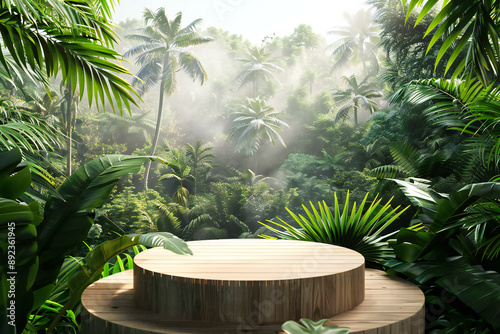 Obraz premium Wooden Podium in Tropical Forest, Nature-Inspired Scenic Display