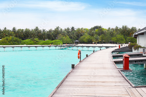 Naklejka premium Wooden pontoon bridge at tropical resort