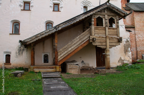 Fototapeta premium wooden porch, Kremlin, Veliky Novgorod, autumn 2020