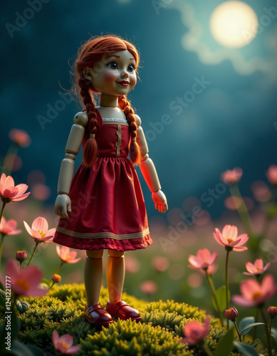 © Jim, Fototapeta premium Wooden puppet of a red-haired girl