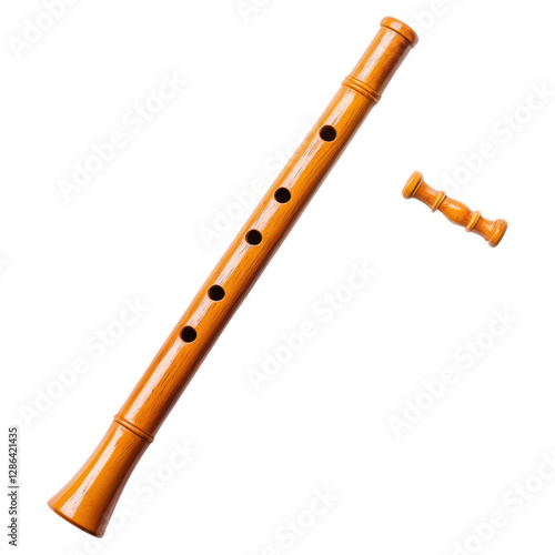 © Sweettymojidesign, Naklejka premium Wooden recorder instrument for music, School supplies, isolated on transparent background