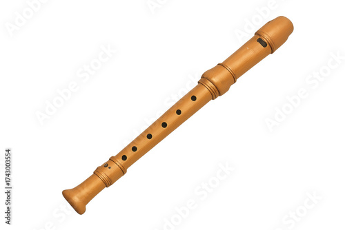 © PerfectPhoto, Fototapeta premium Wooden recorder wind instrument on transparent background
