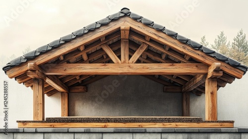© Tatiana Vagizova, Obraz premium Wooden Roof Frame with Natural Elements. Generative AI