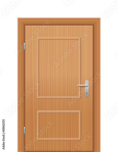 © Peter Hermes Furian, Obraz premium Wooden room door, closed. Isolated vector illustration on white background.