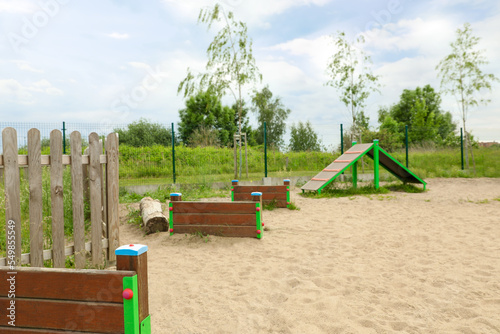 Fototapeta premium Wooden rover jump over and king of hill on animal training area outdoors