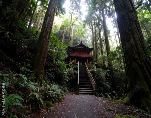 Fototapeta premium Wooden shrine nestled in a dense forest