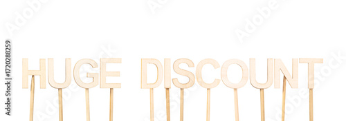 Fototapeta premium Wooden sign with the text Huge Discount, designed to communicate large...