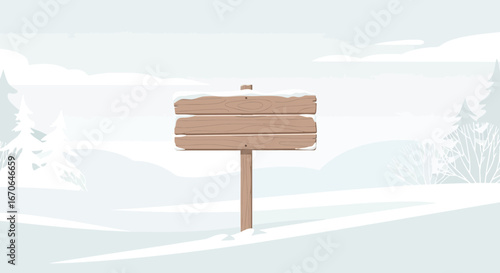 Naklejka premium Wooden Signpost In Winter Landscape Offering Space For Custom Messages