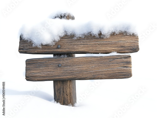 © imam, Naklejka premium Wooden signpost with snow isolated on a white background