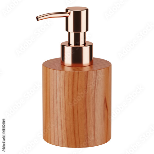 © Creativearts, Fototapeta premium Wooden soap dispenser with rose gold pump isolated on transparent background