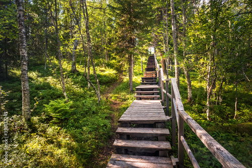 © yulenochekk, Fototapeta premium Wooden staircase to the Eleazarovaya Desert hill on Anzer Island (Solovetsky Islands)