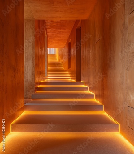 Fototapeta premium Wooden Staircase With Glowing Lights