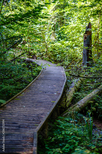 Fototapeta premium wooden stairs in summer green forest